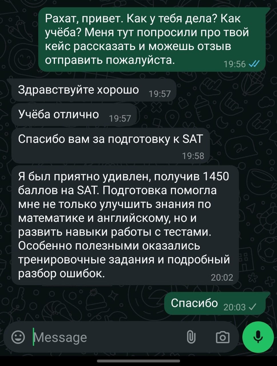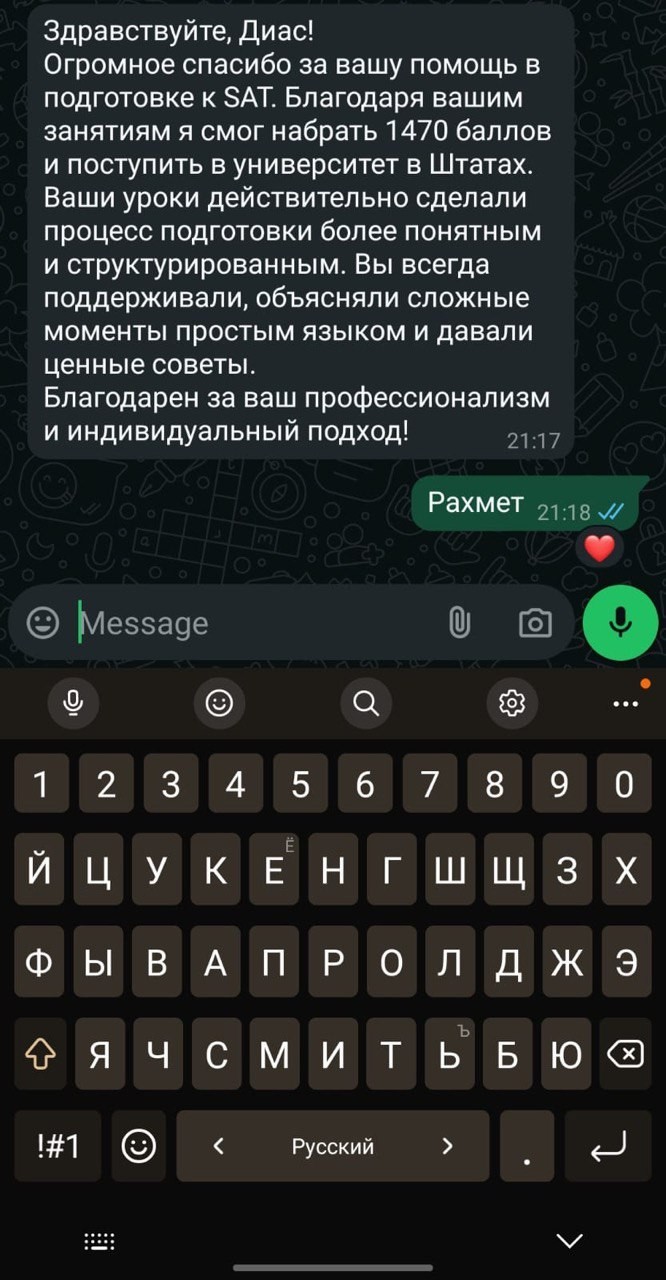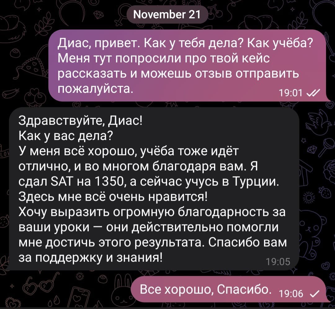 • Преподаватели с опытом работы более 6 лет и с личным баллом SAT 1600 из 1600;